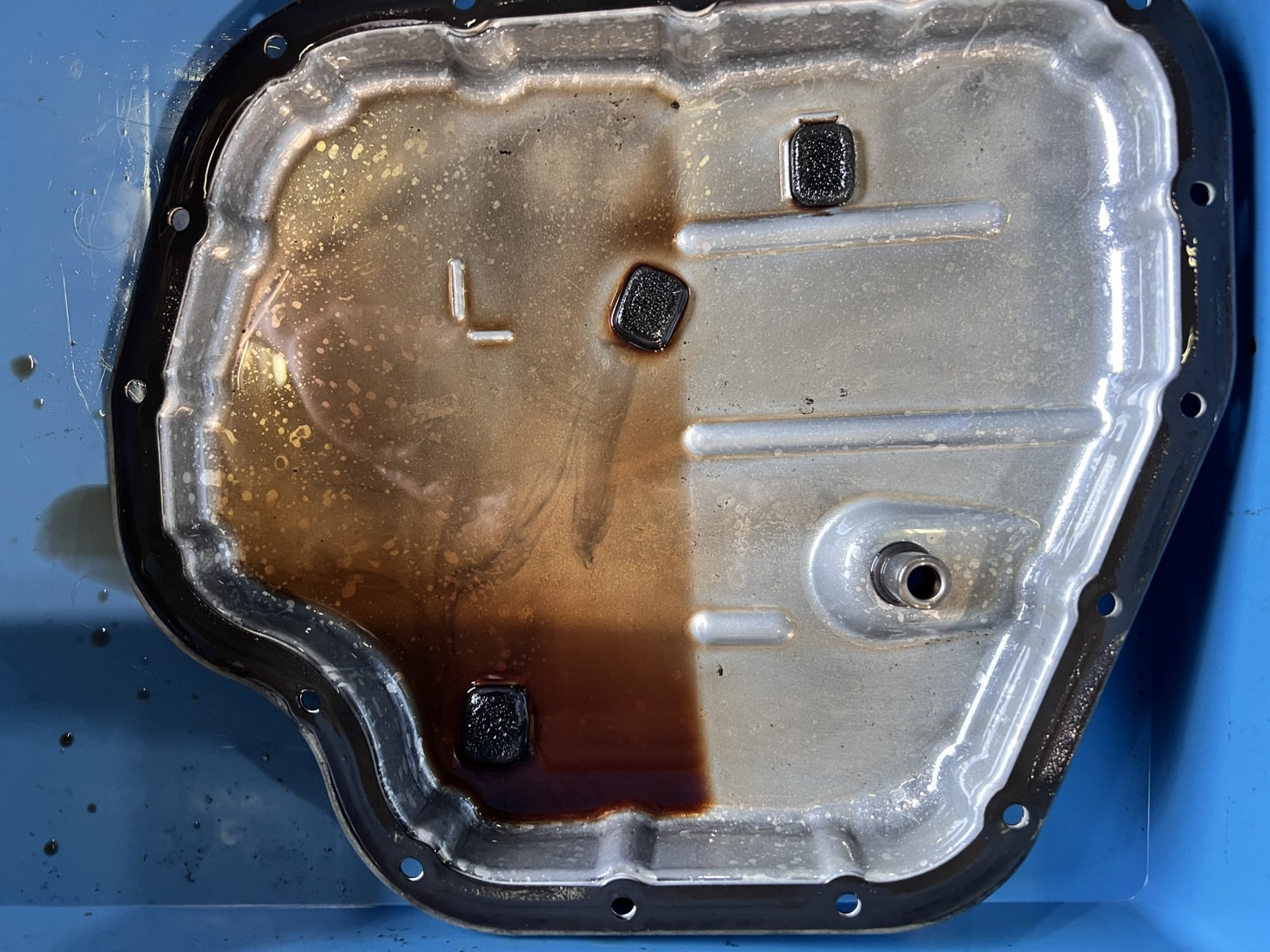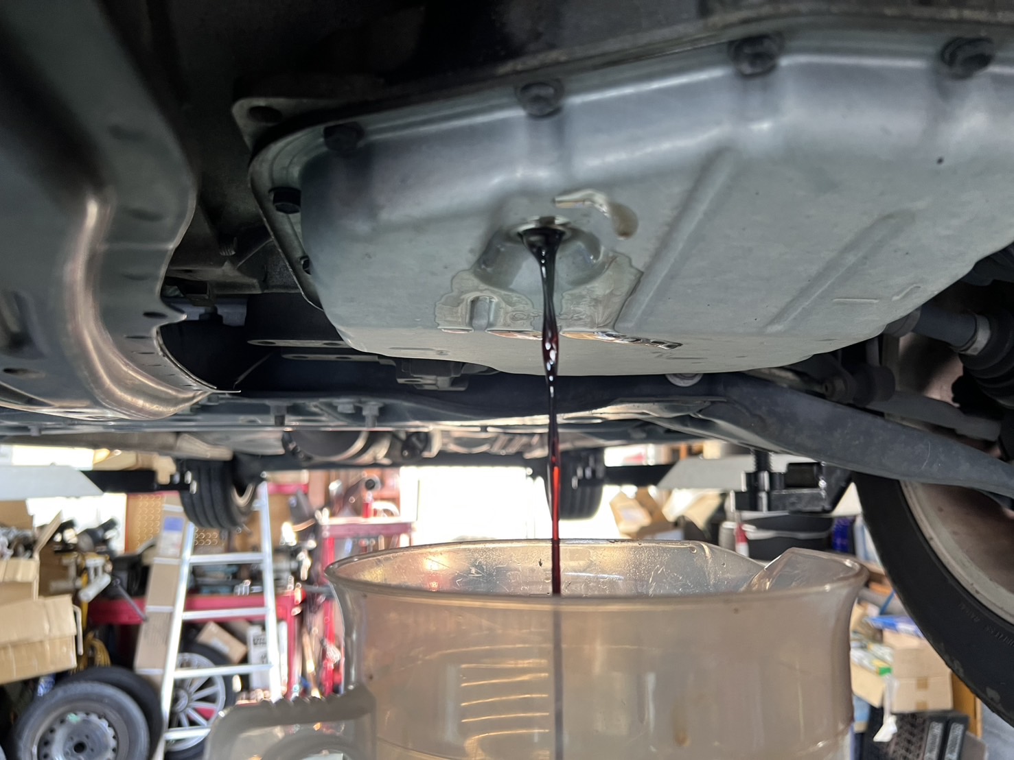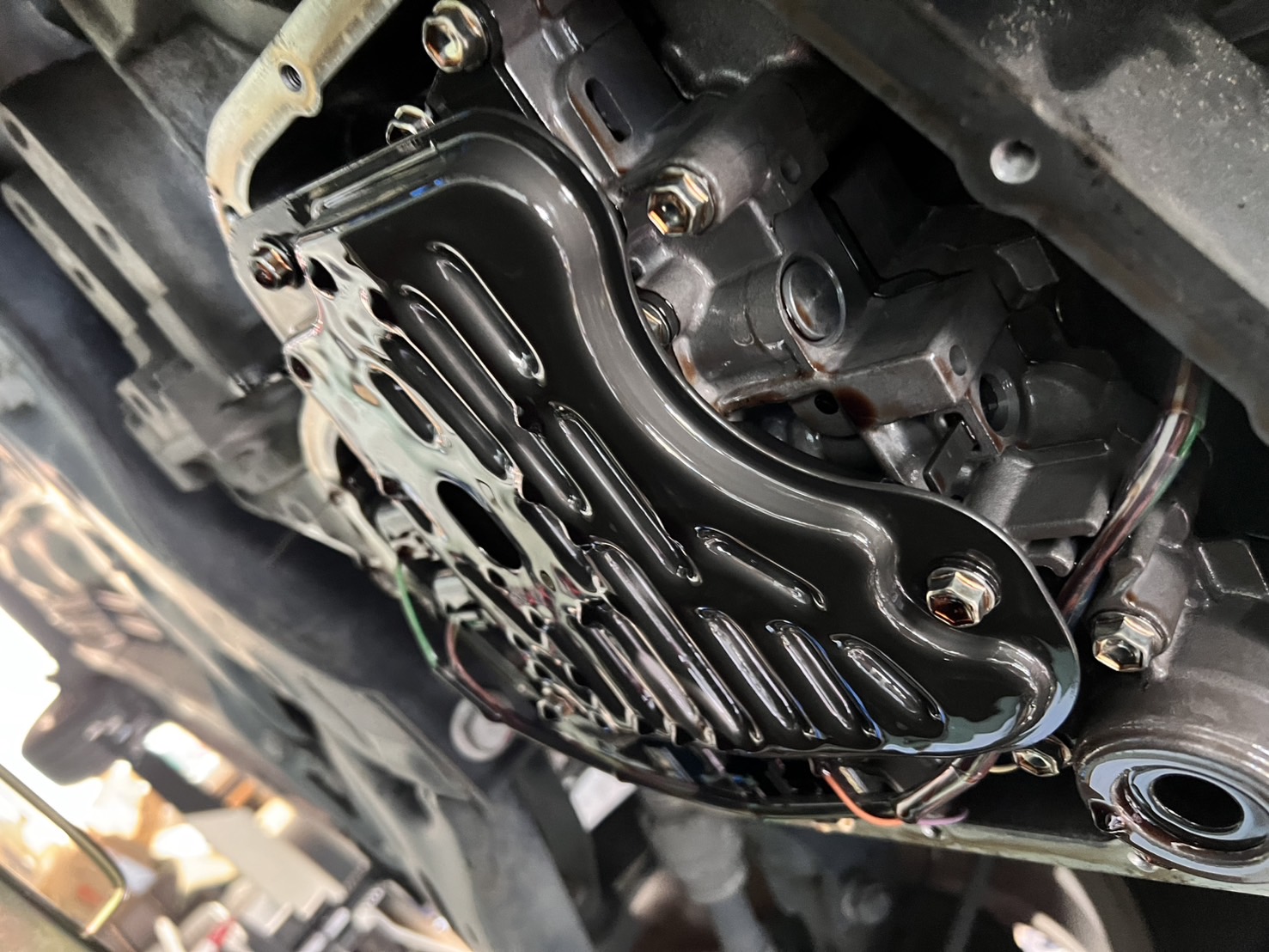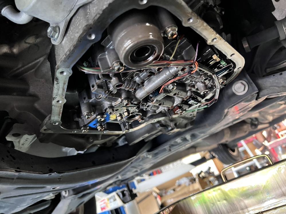 しかし事前に、当店のトルコン太郎の施工をご予約いただいていたので、半分諦めな気持ちで、愛着もあるし、ぶっ壊れるまで乗りたいと言うお気持ちに応えダメ元でトルコン太郎によるCVTオイル循環圧送交換及びストレーナー等の部品の一式交換、オイルパン洗浄を行いました。