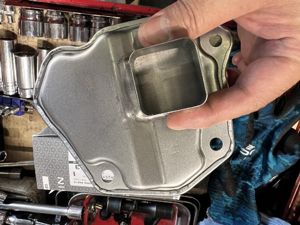 HOME > 施工事例:トルコン太郎 > ☆日産 TE52 エルグランド ハイウェイスター トルコン太郎にてCVTオイル循環圧送交換及びストレーナー一式交換 お約束のオイルパン洗浄